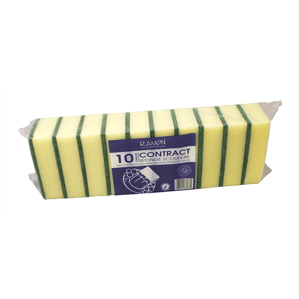 These Sponge Scourers are suitable for both commercial and domestic use. The absorbent sponge enables easy cleaning of dishes, while the abrasive scourer side is ideal for tackling stubborn burnt-on residue. It effortlessly wipes away mess. Each pack contains 10 sponges.